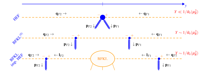 эволюции основан на формализме факторизации при высоких энергиях (ФВЭ) [3], эффективном действии Л.Н. Липатова [4], позволяющем вычислять коэффициентные функции калибровочно-инвариантным способом, и точном решении уравнения БФКЛ следующего за лидирующим порядка [5], сохраняющем ренормгрупповую инвариантность функции Грина. В рамках ФВЭ выполняется пересуммирование судаковских логарифмов, что позволяет стабилизировать импакт-факторы струй. Таким образом были получены наиболее точные аргументы в поддержку проявления БФКЛ динамики в этом процессе, на что явно указывают существующие экспериментальные данные с FNAL Tevatron и CERN LHC, в особенности угловые распределения и отношения угловых коэффициентов.